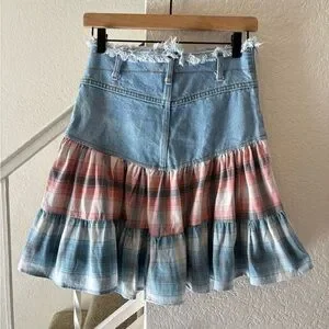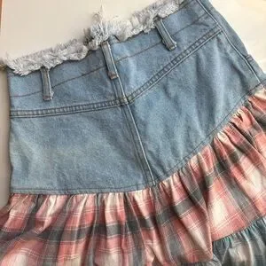 Vintage 90s California Concepts Jean Short Skirt Plaid Sz 7 Made In USA Western