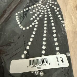 Brand new with tags and still in the original bag. Cute black Kate Spade beanie with minimalist silver rhinestone bow detail.