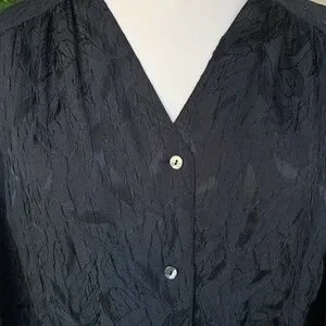 Black Textured Vintage Long Sleeve Button Down Dress w/ Pleated Skirt & Front - Missing Belt