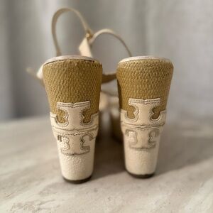 Tory Burch | Cream and Tan Wedge Sandals | 8M