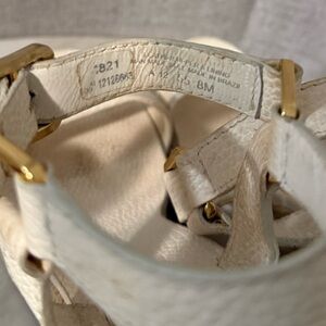 Elevate your style with these Tory Burch wedges, featuring a chic cream and gold color palette. The strappy design and substantial platform offer both elegance and comfort, making them perfect for dressy summer occasions.