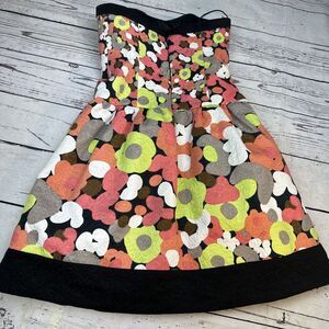Jessica Simpson Dress Size 2 Orange Green Abstract Floral Lined Strapless