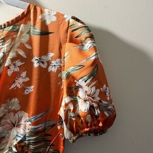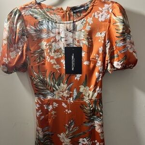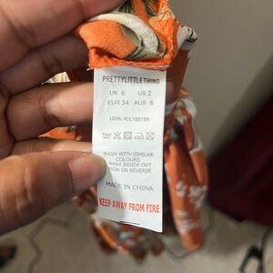 Pretty Little Thing Orange floral print dress size 2. Polyester material!