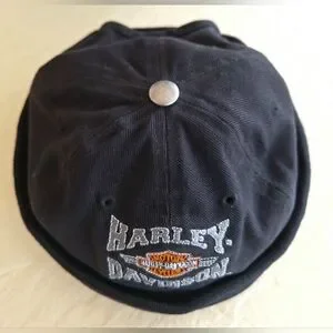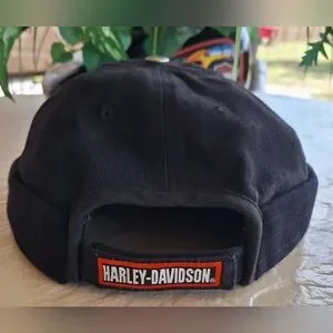 Vintage embroidered Harley-Davidson Beanie. Features metal riveted "button" on top, adjustable backstrap with logo patch. Beautiful condition. Unisex..womens or men's.
