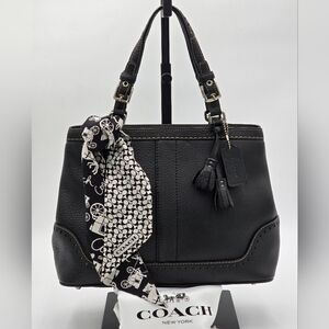 Coach Vintage Hampton Luxury Pebble Leather Tassel Satchel, Black, EUC