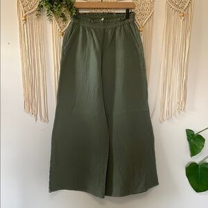 AERIE Pool To Party Wide Leg Gauzy Pants Green Size XL