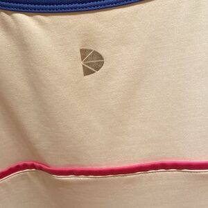 white garment with vibrant blue and pink details. Ideal for tennis or a beach coverup
