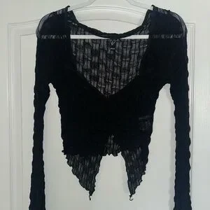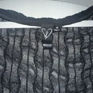 NEVER WORN! This elegant black blouse from Windsor features a unique asymmetrical hem and ribbed texture, offering a sophisticated touch to your wardrobe. The long sleeves and stylish design make it perfect for both casual and formal occasions. Its lightweight fabric ensures comfort while maintaining a chic appearance.