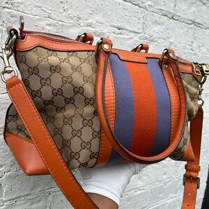 SOLD 🛑 GUCCI GG Canvas Sherry Line Hand Bag 2way Blue Beige Orange