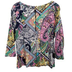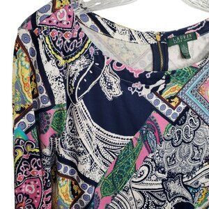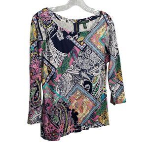 LRL Ralph Lauren Size XL Top Multicolor Paisley Floral Patchwork Print Back Zip
