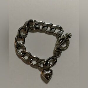 Juicy Couture Heart Charm Bracelet; silver tone; vintage; some scratches & signs of wear; preloved good condition; Questions? Please leave in comments.