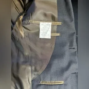 Men’s Renoir suit. This suit is in good condition but both jacket and pants have been altered.