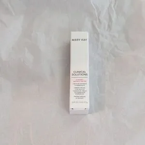 Mary Kay Clinical Solutions in sleek white packaging. Features bold red text accents.