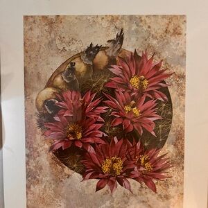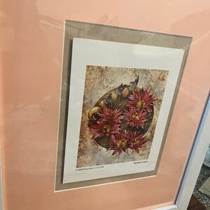 Framed Art Print Cushion Or Cactus Ball with Pink and White 18” x 22”