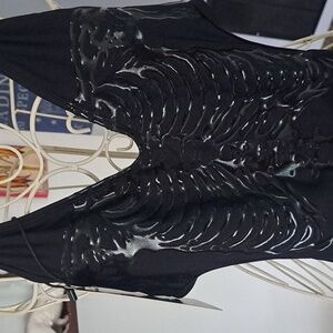 NWT sexy one piece swimsuit with shiny black skeletal decal. back is open--1 strap with a buckle clamp closure. wear with jeans, shorts, or a skirt to a concert or festival! top is lightly lined with cups.