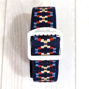 Eddie Bauer Belt Women's Size Small Medium Blue Red Beige with Silver Buckle