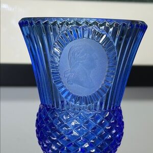 Vintage Avon Fostoria Cobalt Blue Glass Goblet with George Washington