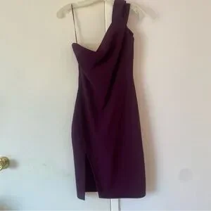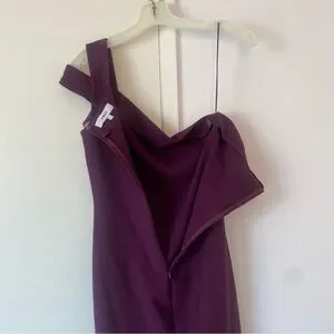 NWOT - never worn, size 6 eggplant purple dress by LIKELY - one shoulder, with front slit