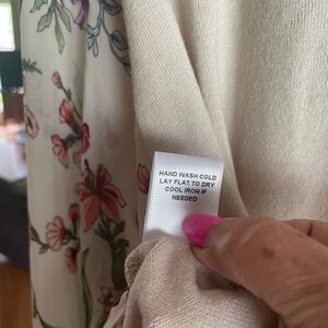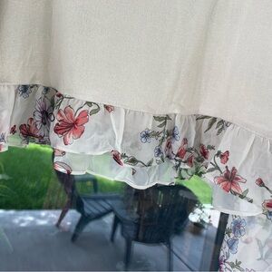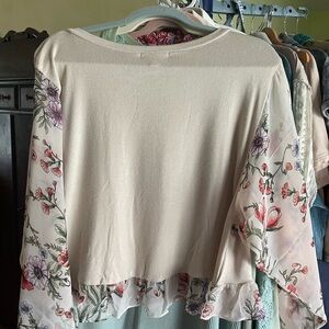 Elevate your style with this elegant creamy beige top featuring beautiful sheer floral sleeves with red , blue green, yellow and purple floral pattern. Perfect to wear spring through fall! Body is a very soft light knit loose fit. Perfect for any occasion. Brand new with tag. Never worn. Ptp 21