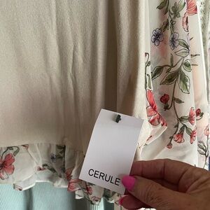Cream Floral Sleeve Top by Cerule Sz L . Sheer sleeve floral blue green NWT