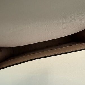 This Kate Spade designer crossbody bag showcases a sophisticated tan, white and black color palette, perfect for adding a touch of elegance to any outfit. Its minimalist design and compact size make it an ideal accessory for both casual and formal occasions. The bag features a flap closure and a sleek silhouette, ensuring both style and practicality. Short chain strap is attached. Long leather strap (included) is removable.