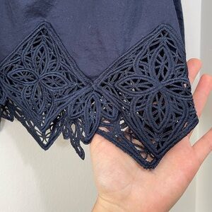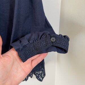Chico's Elegant Blue Navy Women's Lace Trim Top Blouse Cotton Casual Career Sz 4