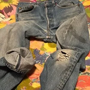 Made in USA. Epic, epic, epic. LOTS of vintage flaws, wear, lots of marks, stains, HOLES including at crotch, big stains on legs, thinning, etc. Sickest fade. Waist about 15 now. Reasonable offers okay. Pls do not buy if you don’t like the imperfect :) for fans of Rudy Jude, babaa