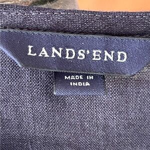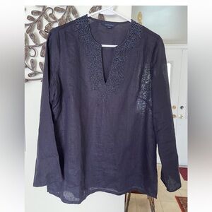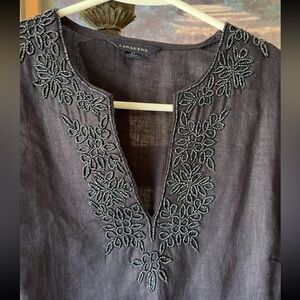 LANDS’ END Bead-Embellished Navy Linen V Neck Resort Vibe Top Small EUC