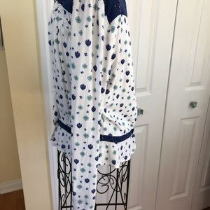 Free People White & Blue Print Top 2 buttons Size Medium