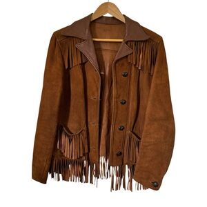 Vintage Brown Fringe Leather Jacket 50s Western Boho Harriswear Womens Medium