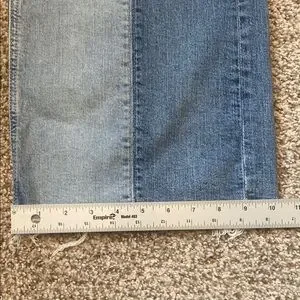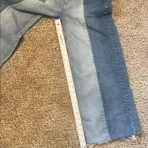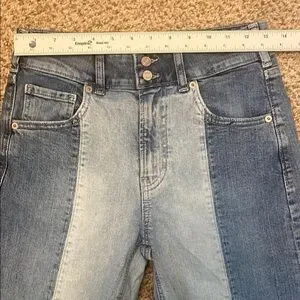 GAP Ladies HighRise Stride Patch Med Indigo Flare Wide Leg Jeans Raw Hem 26/2P
