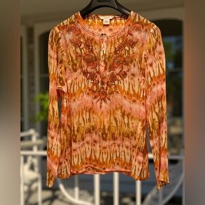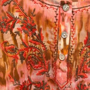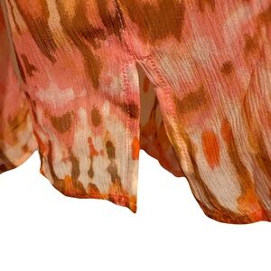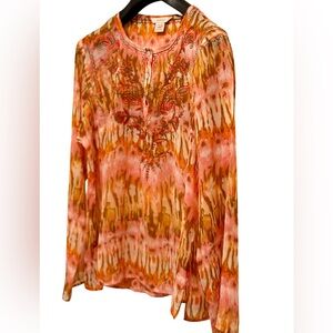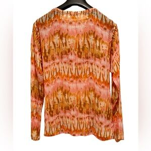 Sundance NWOT Size PL Pretty Orange & Brown Semi-Sheer Long Sleeve Blouse (0635)