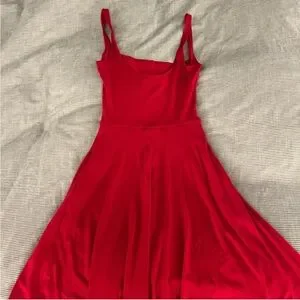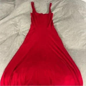 This stunning red sundress by Reformation features a chic squarish neckline and a sleeveless design, perfect for a cocktail night out. The dress boasts a flattering fitted bodice that transitions into a flowing midi skirt, offering both elegance and comfort. Its vibrant red hue and lightweight fabric make it an ideal choice for warm weather occasions.