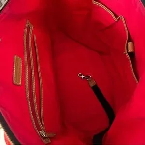 Tan and black/dark brown Dooney & Bourke tote with red interior! It's in very good conditions, i've only used once! Very spacious!