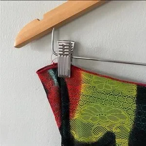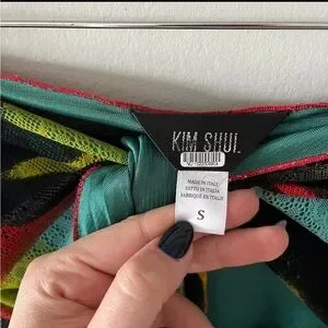 Size small. A few loose threads. Not noticeable at all when worn. Worn once in Vegas for a bachelorette party. Originally $295.