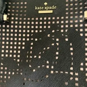 Elevate your style with this elegant Kate Spade black perforated handbag. Perfect for any occasion, this bag combines sophistication with functionality. Two inside pockets with plenty of room for storing all essentials.