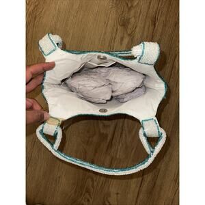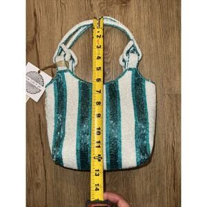 Turquoise & White Striped Beaded Bag Handbag NWT M ade in India