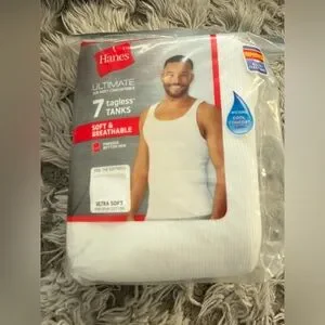 Hanes Tagsless Tanks size XL in white. Soft breathable, finished bottom Hem. New in pack. 7 shirts are in the pack.