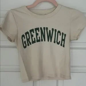 Discover the effortless style of Brandy Melville's cream and green short sleeve tees, perfect for casual everyday wear. These tees feature minimalist designs with a focus on comfort and simplicity, crafted from soft cotton-blend materials. The collection includes options with subtle text graphics, adding a touch of personality to your wardrobe.