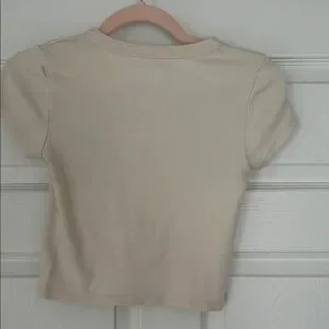 Brandy Melville Cream and Green Short Sleeve Tees