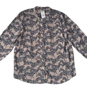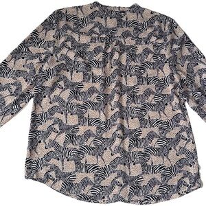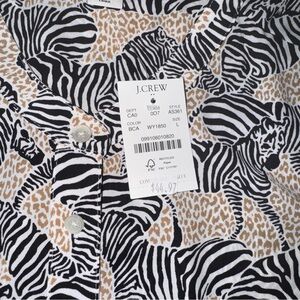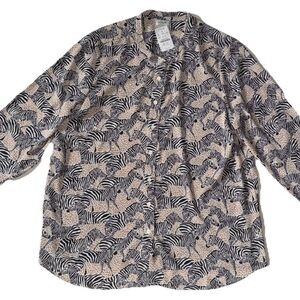 J. Crew Factory Band Collar Button Up Top Animal Print Zebra Print Women’s L