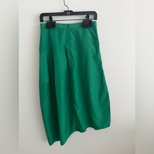 This Italian Sporty Nylon Asymmetrical Balloon Skirt is crafted from an Italian lightweight luxe techy fabric and comes in bold green and orange color-ways. Pair this semi-voluminous style with a coordinating pleat sleeve top for a fuss-free look that is sure to earn a double take.