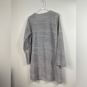 SeeDesign Women's Striped Gray and White Dress Long Sleeve Summer Cotton Size L