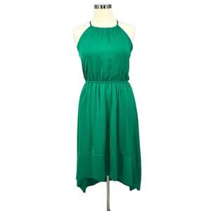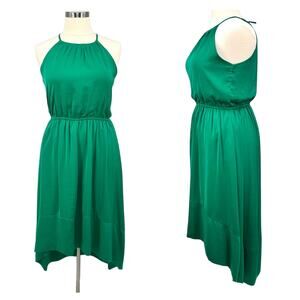Banana Republic Kelly Green Halter Dress 14 High Low Pockets Lined Sleeveless