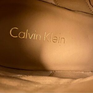 Calvin Klein Bernadet Platform Black Gold Patent Leather Boots size 5