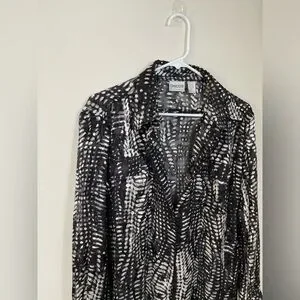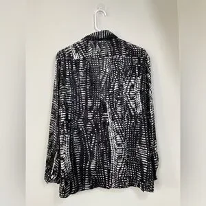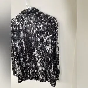 Elevate your style with this chic black and white shirt from Chico's. Perfect for any occasion, this Shirt offers a sophisticated look with its unique pattern. Ideal for adding a touch of elegance to your wardrobe.