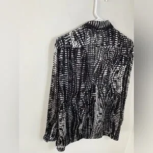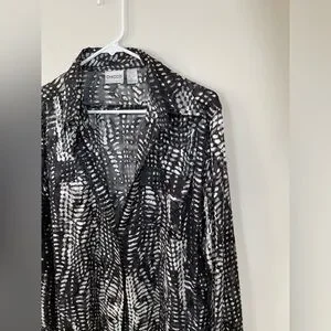 Chico's Black White Silk Lightweight Burnout Art-to-Wear Shirt Тор Button Down 1