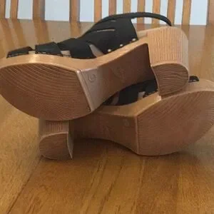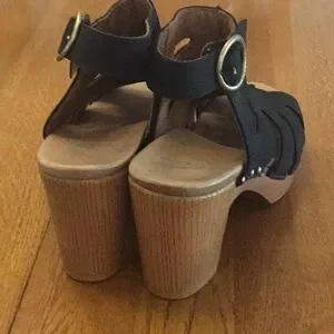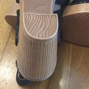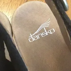 Woman’s Dansko black nubuck leather heeled platform sandal in size 40. Leather. Ankle strap has a brass buckle but is Velcro. Leather inner sole. Platform is 1”. Heel is 3”. Bottom sole is formed rubber for comfort! These have never been worn! New! Will go with anything!