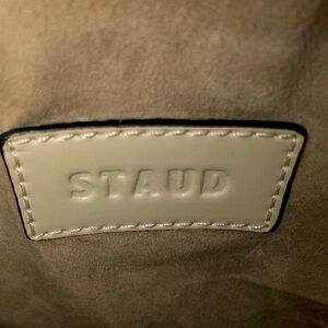 The STAUD crossbody bag in antique white showcases a sleek, structured design. Its adjustable strap ensures comfort and versatility, making it an ideal choice for everyday wear. This bag combines modern aesthetics with practical functionality. All bags are final sales - no returns. Questions welcome :) NWOT