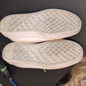 excellent sneakers with a ton of life left in them. normal wear and could use some cleaning in a few spots if you want them to be sparkling white.